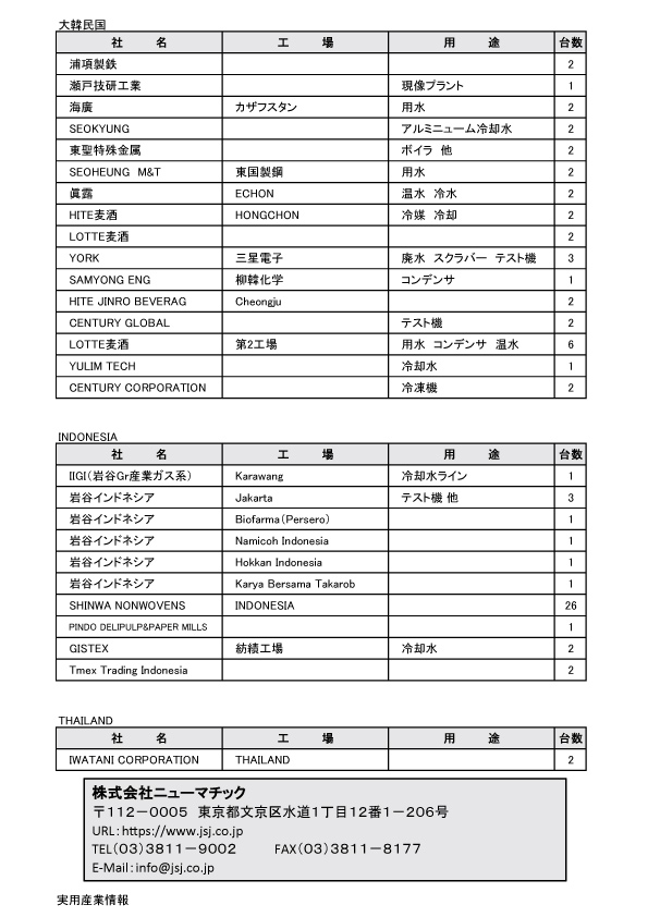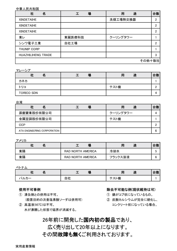 <<2年後ノ点検ノ際にも、スケールの付着は全くなく、メンテナンスフリーである>>